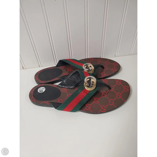 Sandals Luxury Designer By Gucci In Green & Red, Size: 6.5