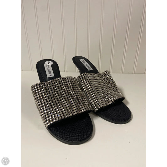 Sandals Heels Stiletto By Steve Madden In Black & Silver, Size: 7