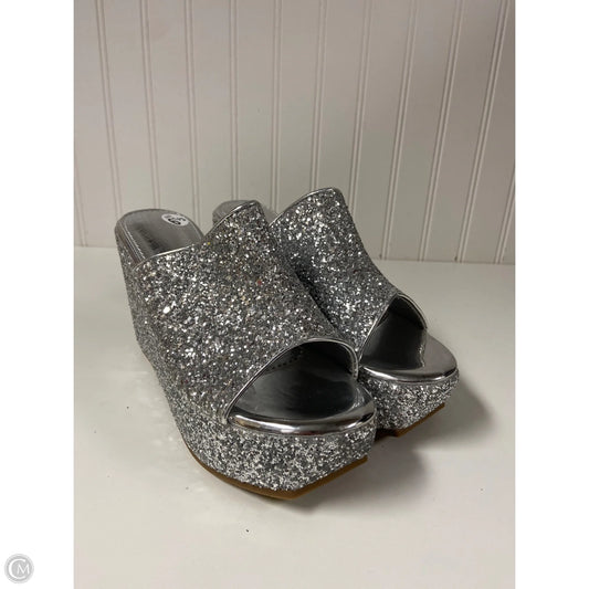 Sandals Heels Wedge By Clothes Mentor In Silver, Size: 6.5