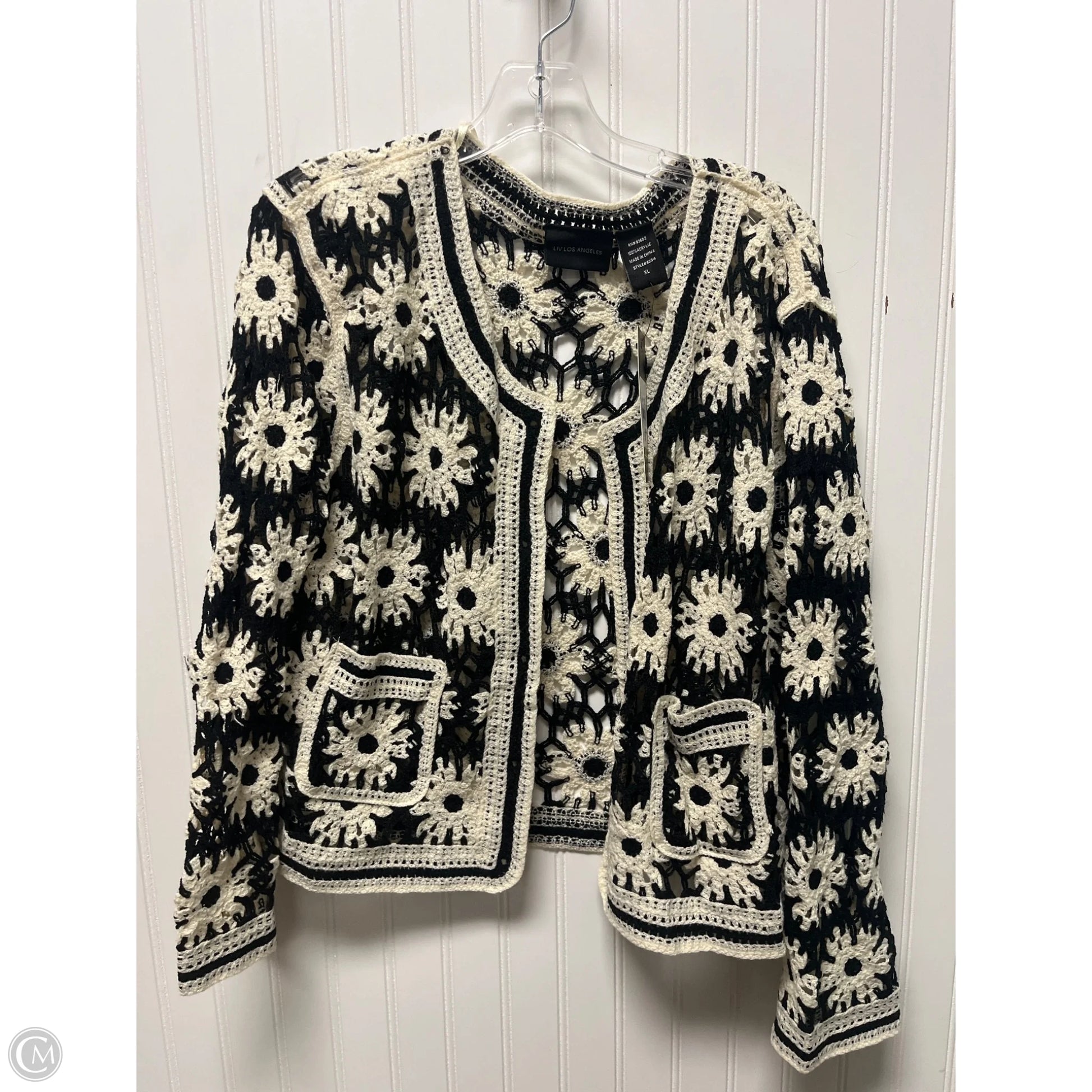 Sweater Cardigan By Clothes Mentor In Black & Cream, Size: Xl