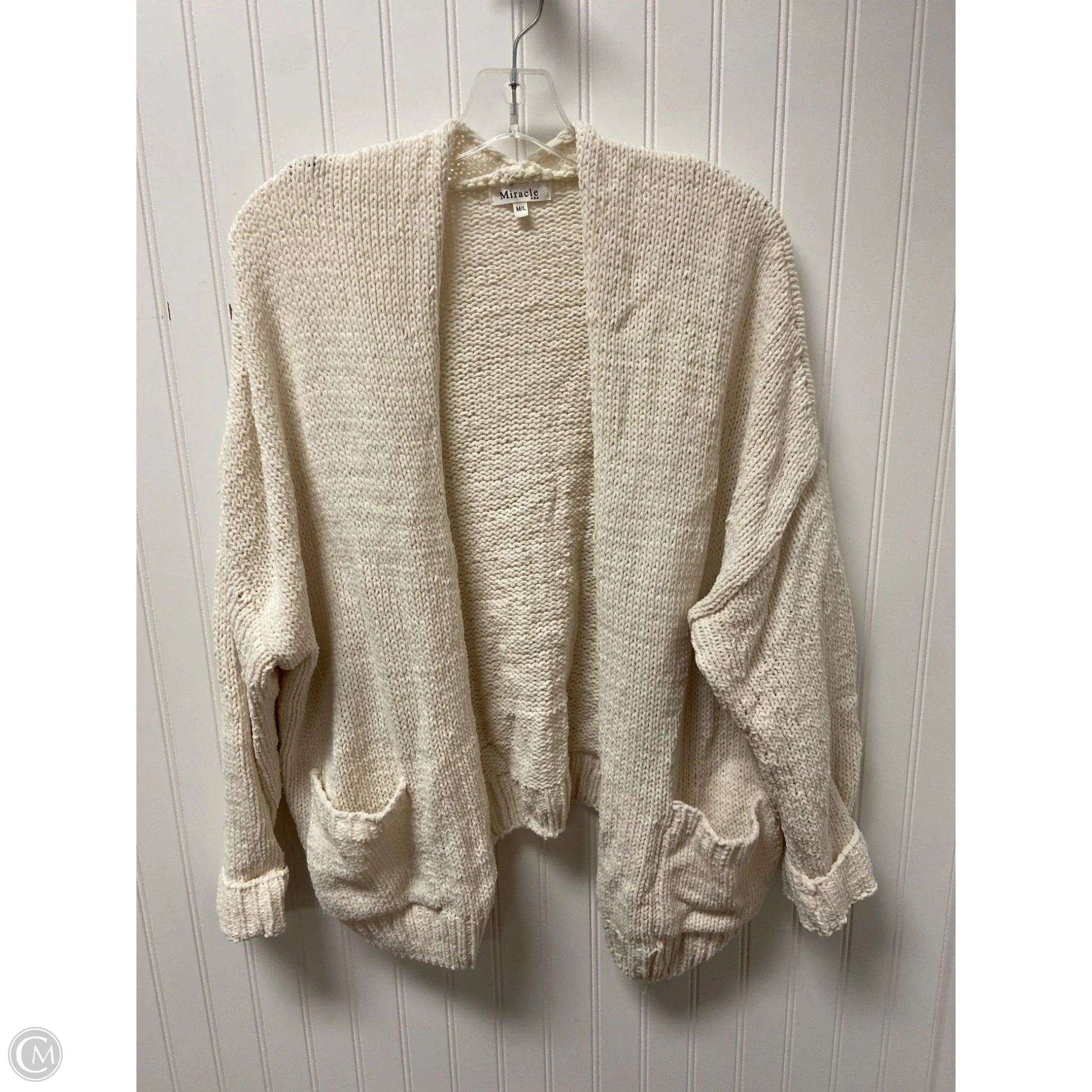 Sweater Cardigan By Miracle In Cream, Size: M