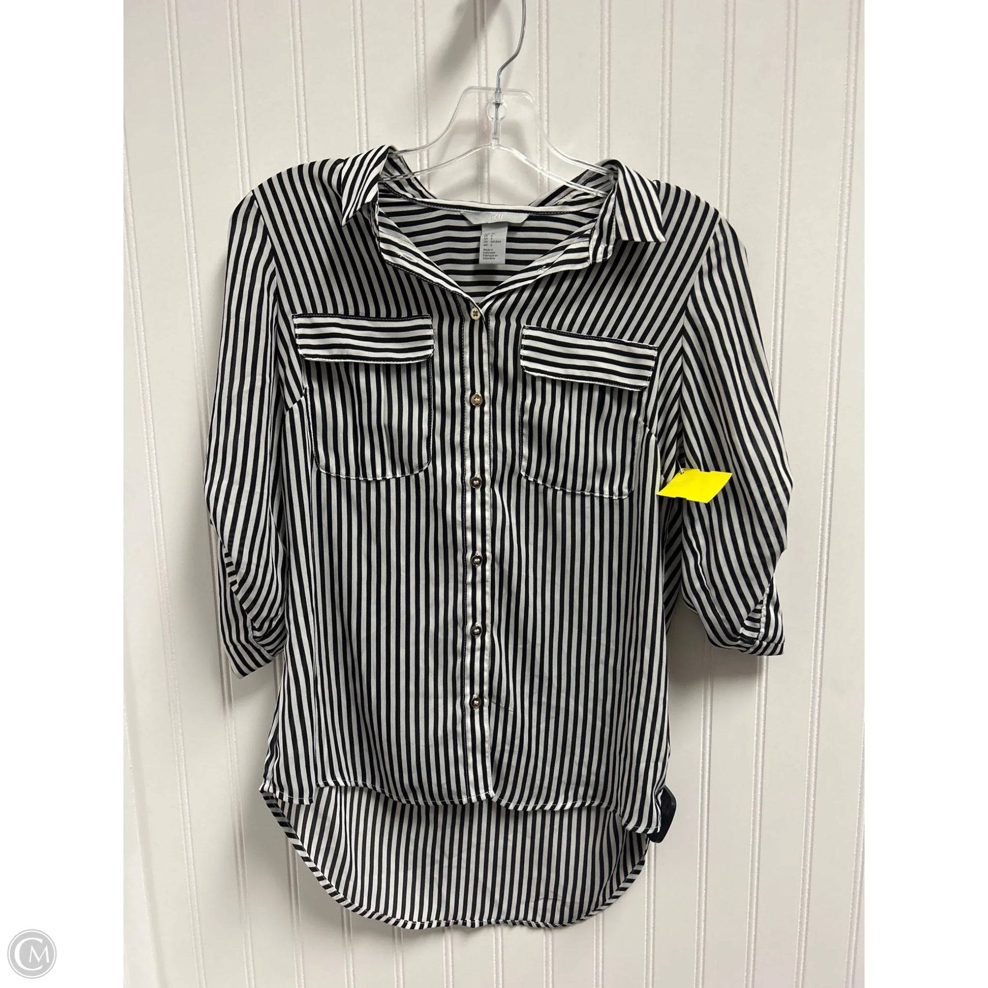 Top 3/4 Sleeve By H&m In Black & White, Size: S