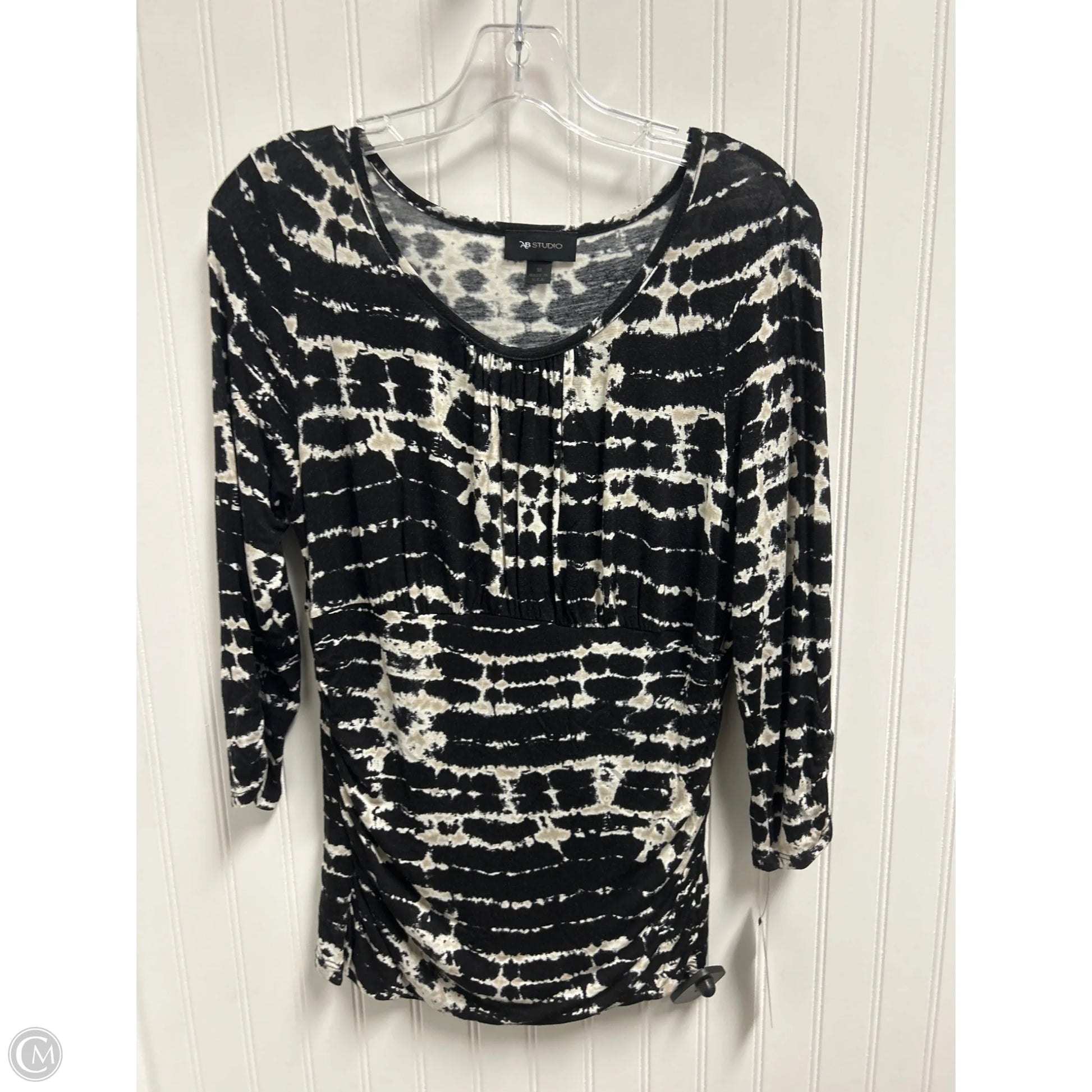 Elevate your everyday look with this chic black long sleeve top from Ab Studio in size M. The perfect mix of comfort and style for a trendy wardrobe update.