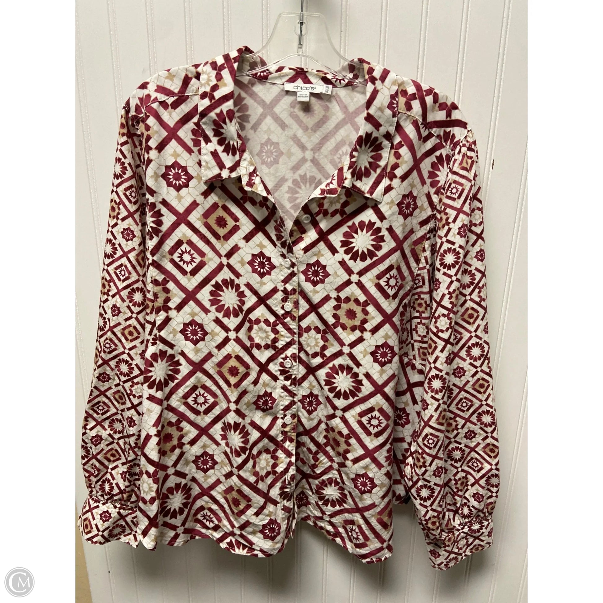 Top Long Sleeve By Chicos In Red & White, Size: Xl