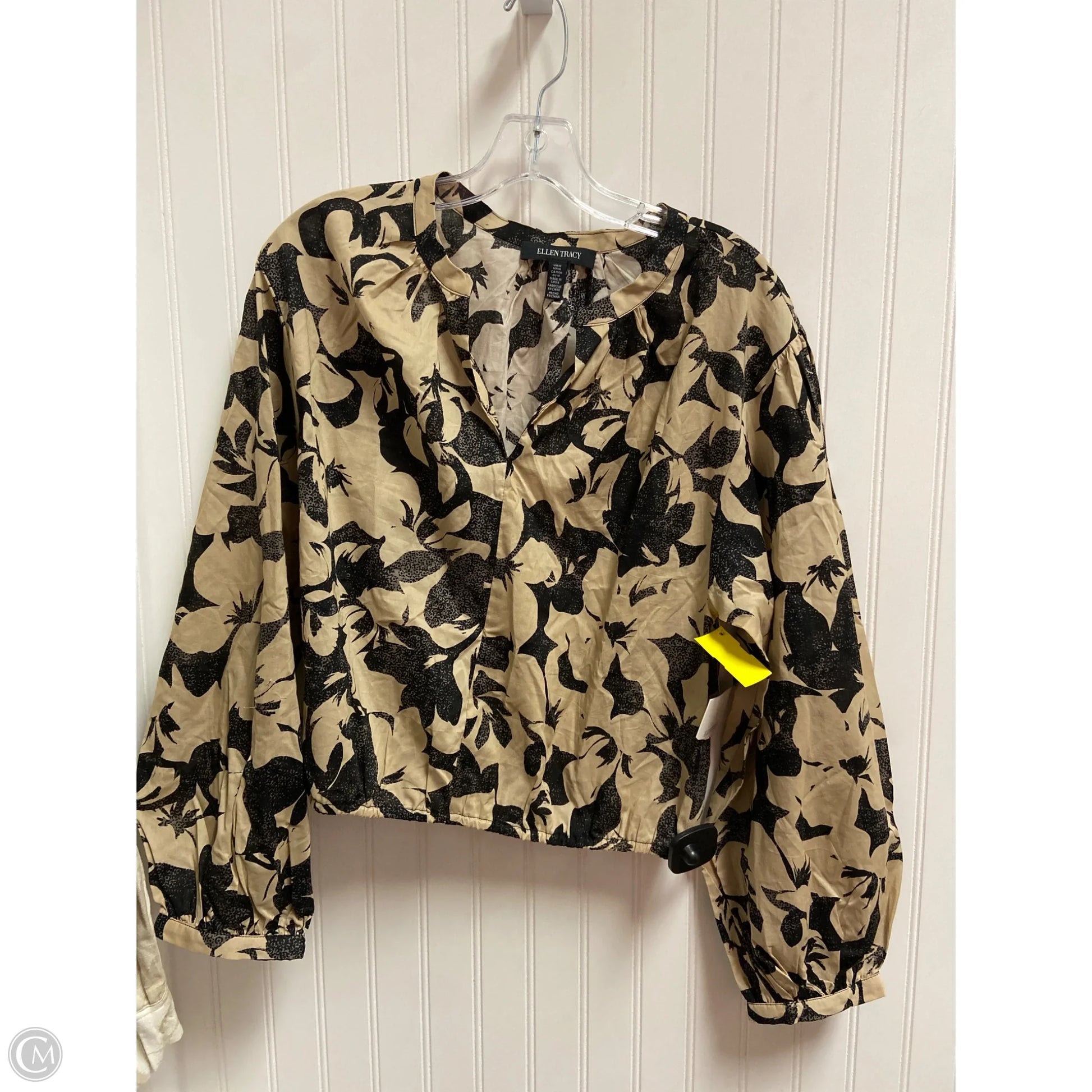 Top Long Sleeve By Ellen Tracy In Black & Tan, Size: M