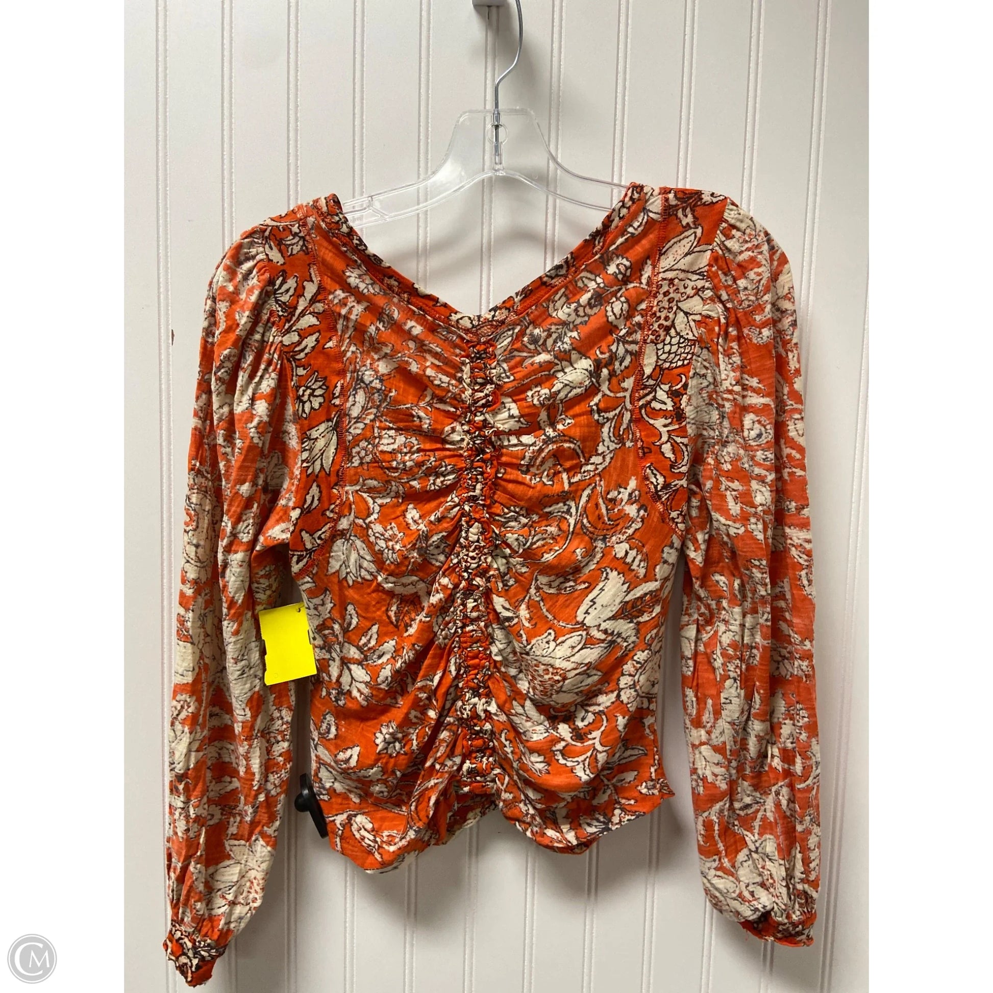 Top Long Sleeve By Free People In Cream & Orange, Size: Sp