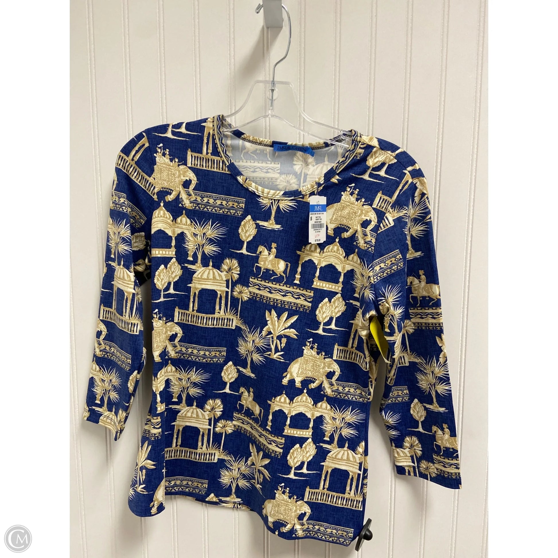 Top Long Sleeve By J Mclaughlin In Blue & Cream, Size: S