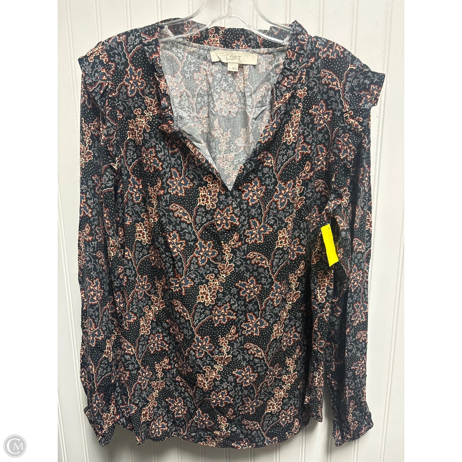 Top Long Sleeve By Loft In Black & Orange, Size: S