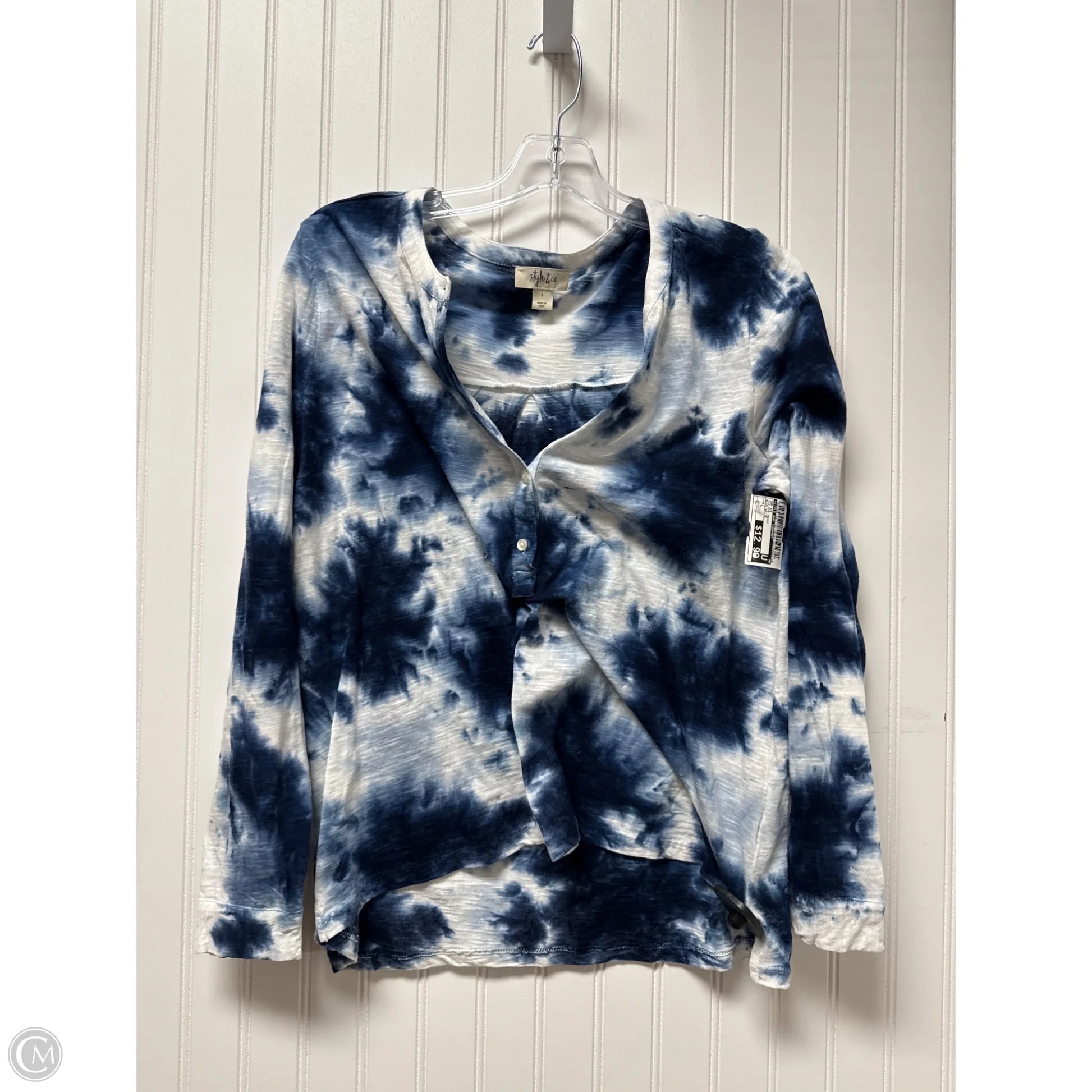 Top Long Sleeve By Style And Company In Tie Dye Print, Size: L