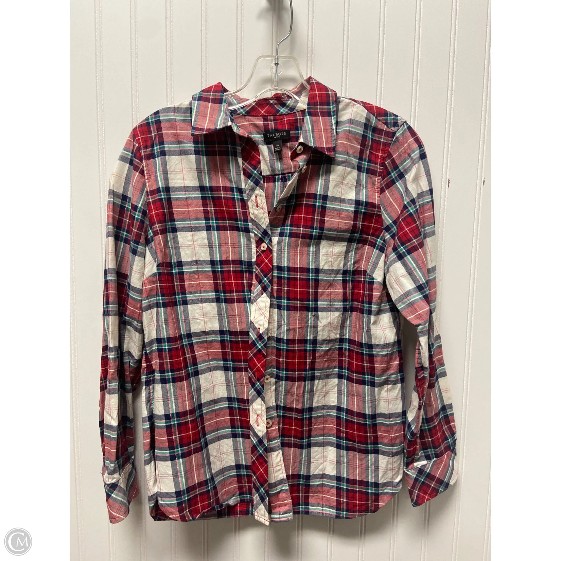 Top Long Sleeve By Talbots In Checkered Pattern, Size: S