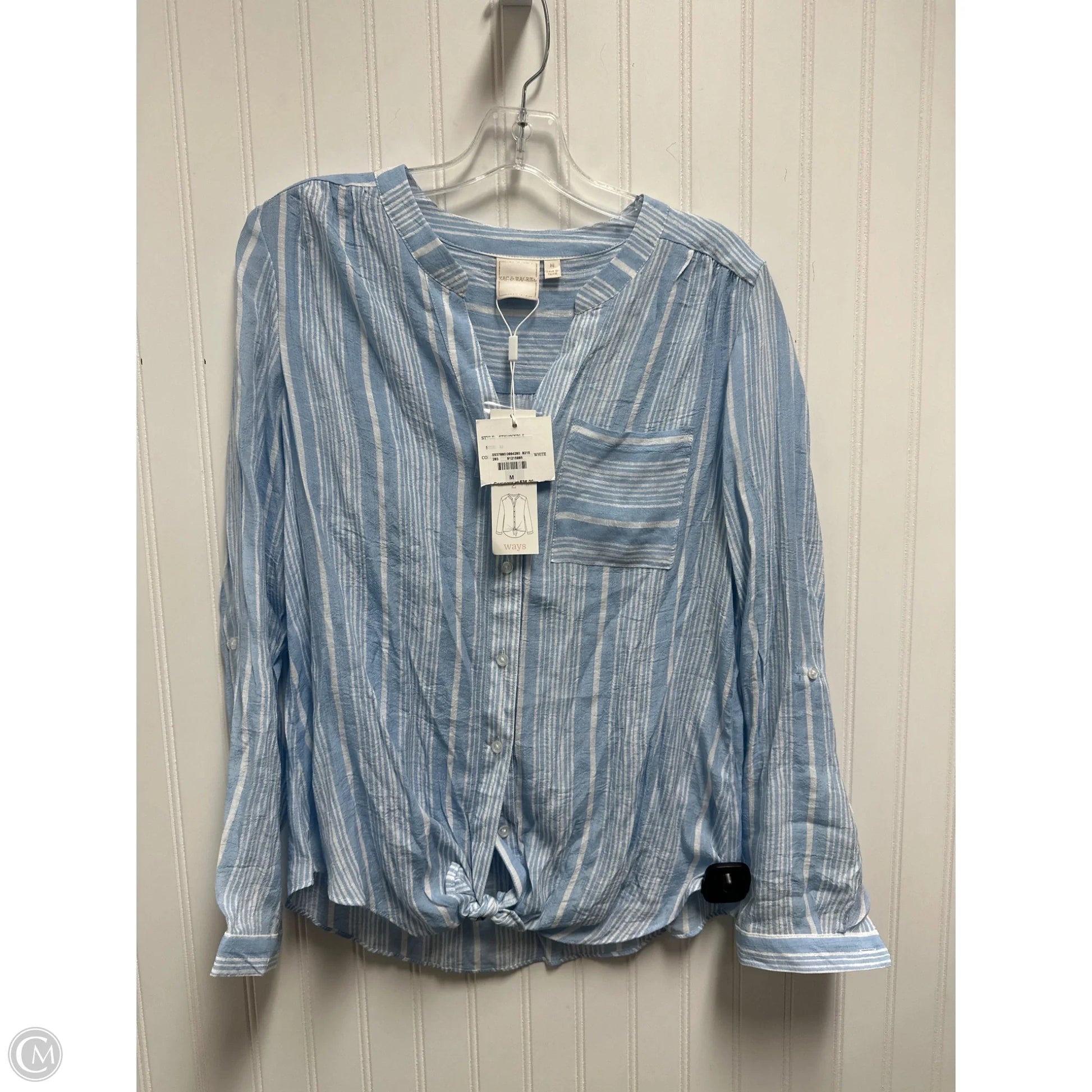 Top Long Sleeve By Zac And Rachel In Blue & White, Size: M