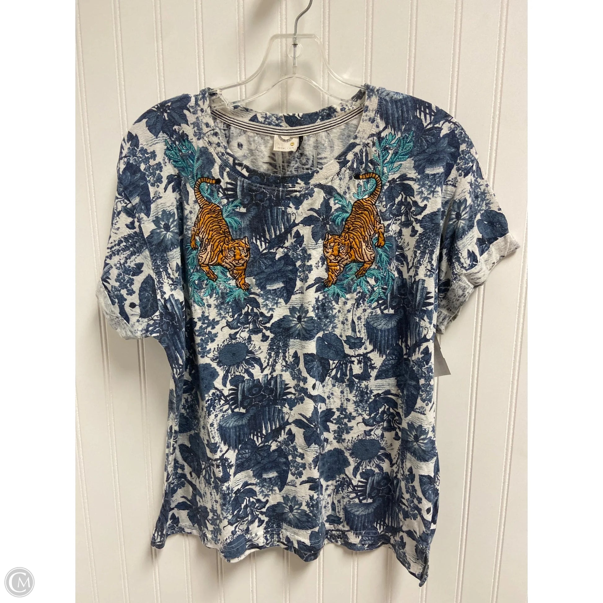 Top Short Sleeve By Anthropologie In Blue & White, Size: S